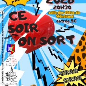 Les Chapotins présentent leur dernière pièce « Ce soir on sort » une comédie de Pascal GUILLEMAUD librement adaptée par la troupe. Représentation le 21 février 2026 à 20h30 à la salle municipale de Vénérand en partenariat avec le Comité des Fêtes de La Chapelle des Pots et le Foyer Rural de Vénérand. Entrée 5€. Réservation au […]