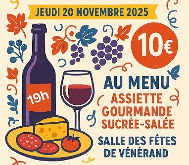 Rendez-vous jeudi 20 novembre 2025 dès 19h, à la salle des fêtes de Vénérand. Ambiance garantie, modération conseillée.