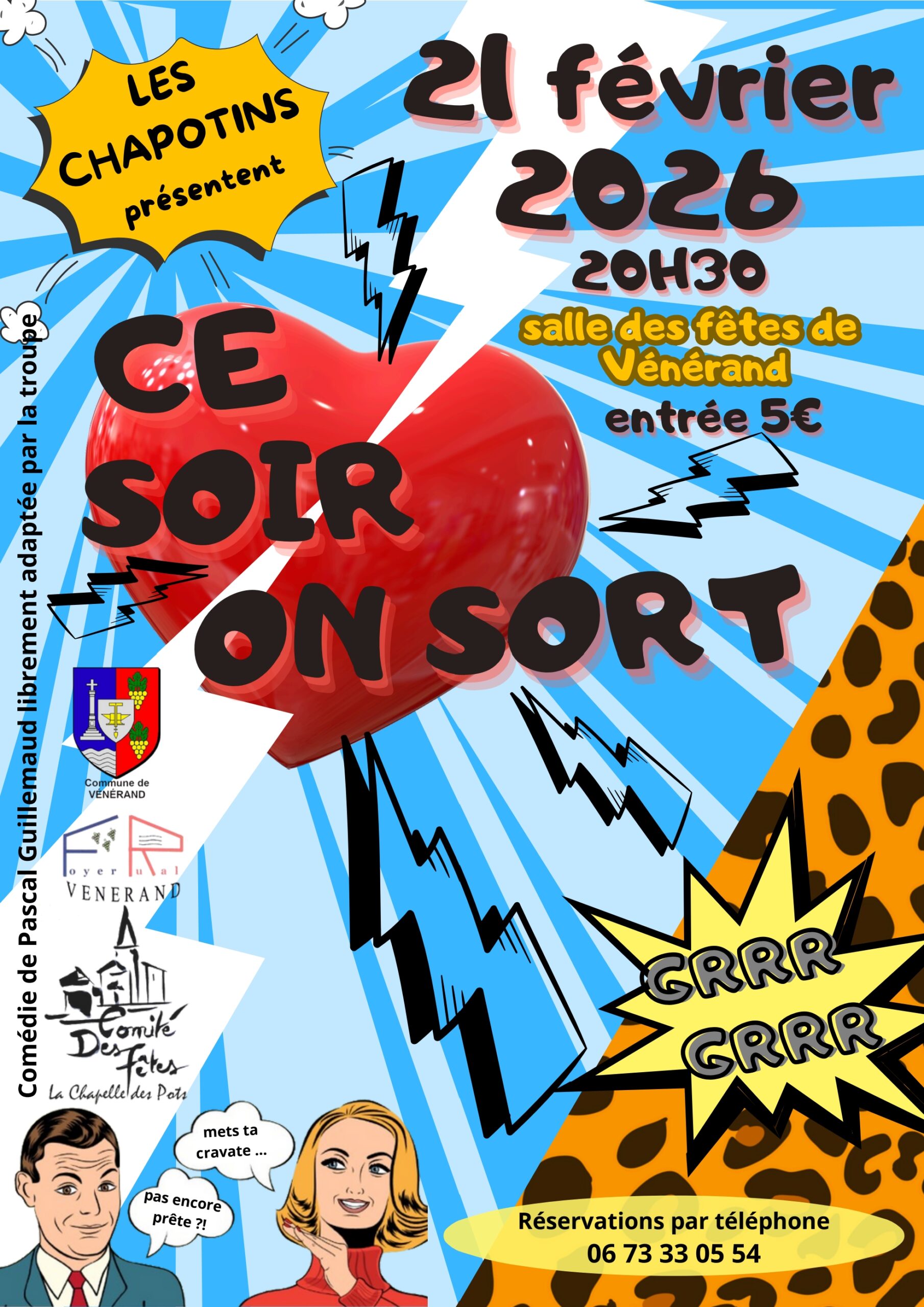 Représentation le 21 février 2026 à 20h30 à la salle municipale de Vénérand en partenariat avec le Comité des Fêtes de La Chapelle des Pots et le Foyer Rural de Vénérand.